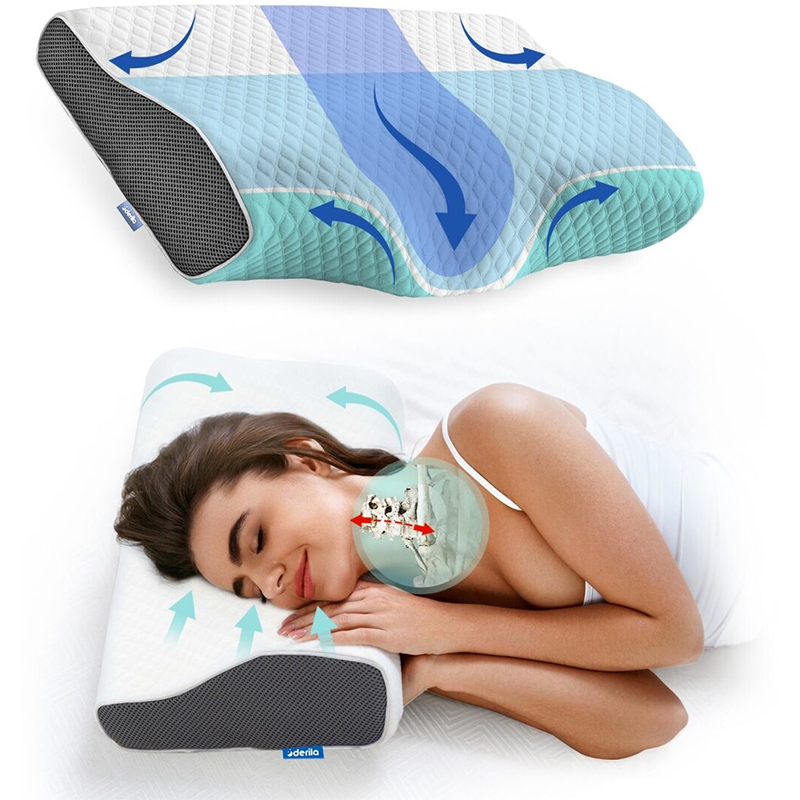 Das Derila Kissen ist ein ergonomisches Kissen, das speziell entwickelt wurde, um die Schlafposition zu unterstützen und Nacken- sowie Rückenschmerzen vorzubeugen. Es ist aus viskoelastischem Material gefertigt, das sich dem Körper anpasst und gleichzeitig ausreichend Halt bietet. Die innovative Form des Kissens soll eine optimale Ausrichtung der Wirbelsäule fördern, sodass der Nutzer entspannt und schmerzfrei schlafen kann.
